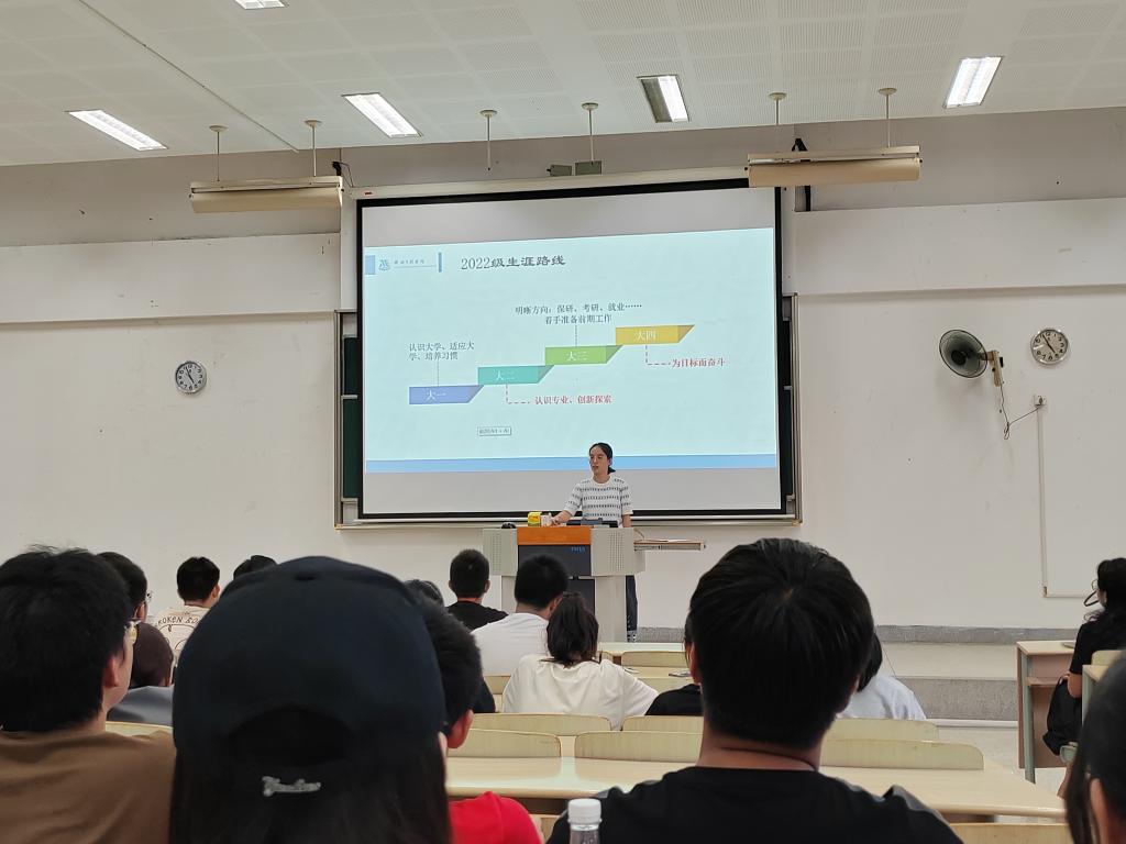 最后,宋京姝面向新生开展党员发展工作介绍及职业生涯规划引导教育。党员发展工作介绍环节,她详细讲解了党员发展流程、发展要求,以及每个阶段要注意的事项,强调了党员发展的规范性与严肃性,希望新生坚定理想信念,端正入党动机,积极向党组织靠拢。生涯规划引导教育中,她为大家梳理了大学四年的学习、工作重点,希望新生志存高远,功在平时,成在未来。