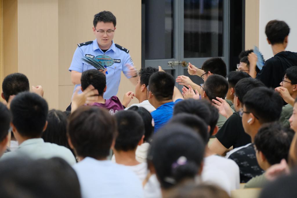 为进一步增强新生的反诈意识,提高学生对电信网络诈骗犯罪的辨别能力和应对能力,打造平安和谐的校园环境,9月6日晚,机械工程学院2023级本科生“防范于心,反诈同行”安全教育讲座在第二教学楼2A127教室成功举办。无锡市滨湖区雪浪派出所民警杨恺、机械工程学院2023级本科生辅导员萧欣彤以及全体2023级本科新生参加。本次讲座由萧欣彤主持。